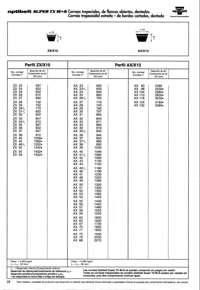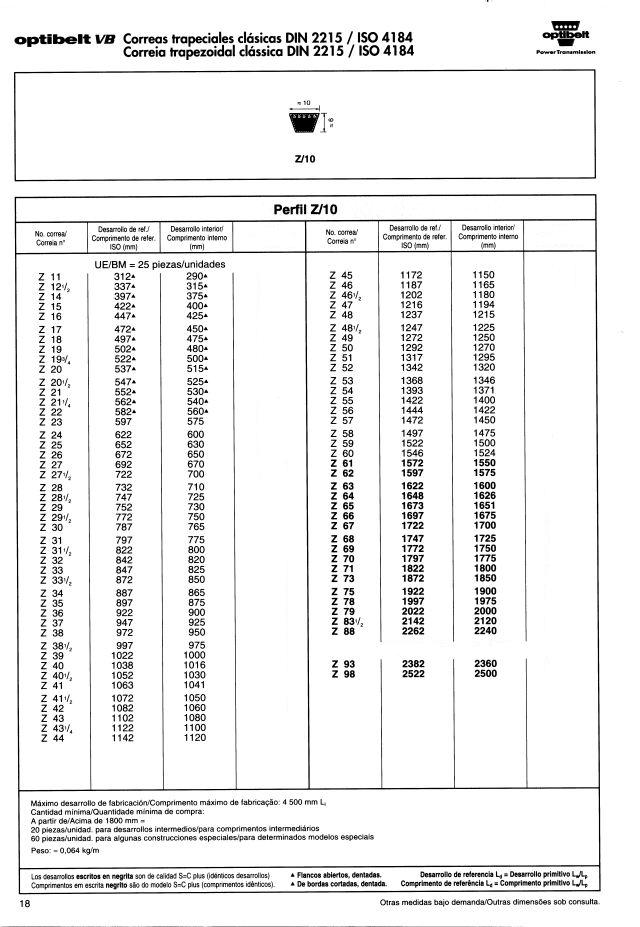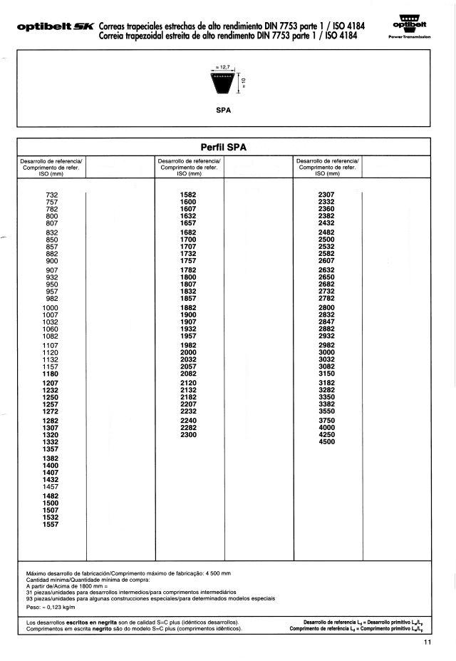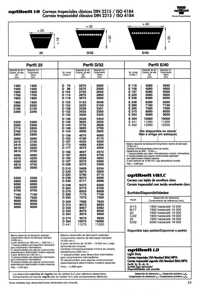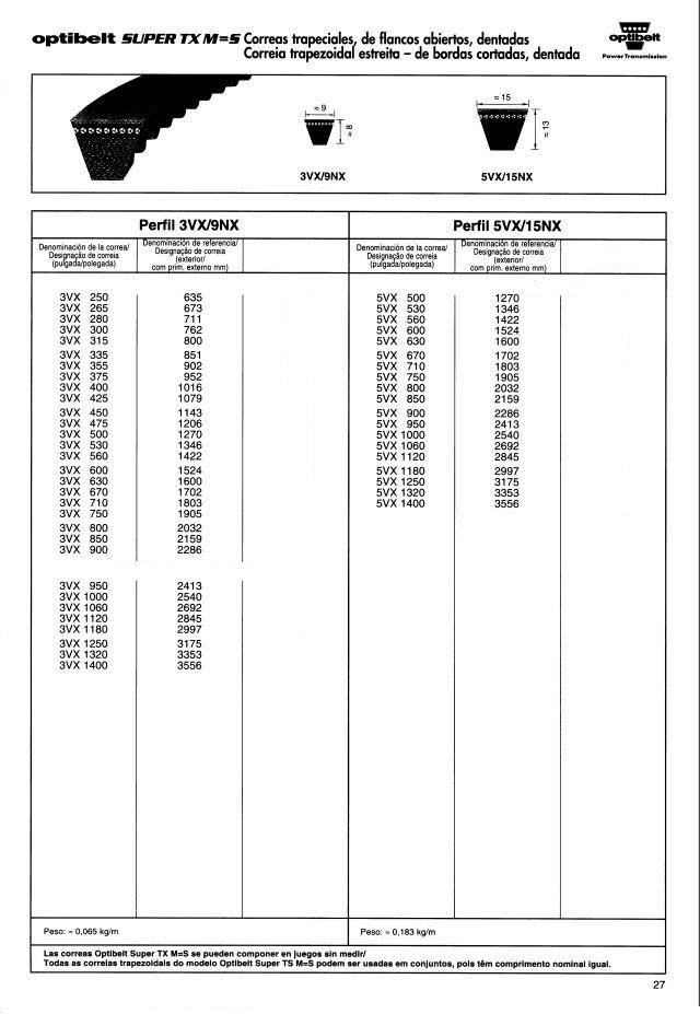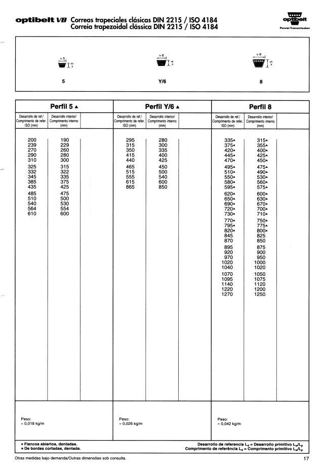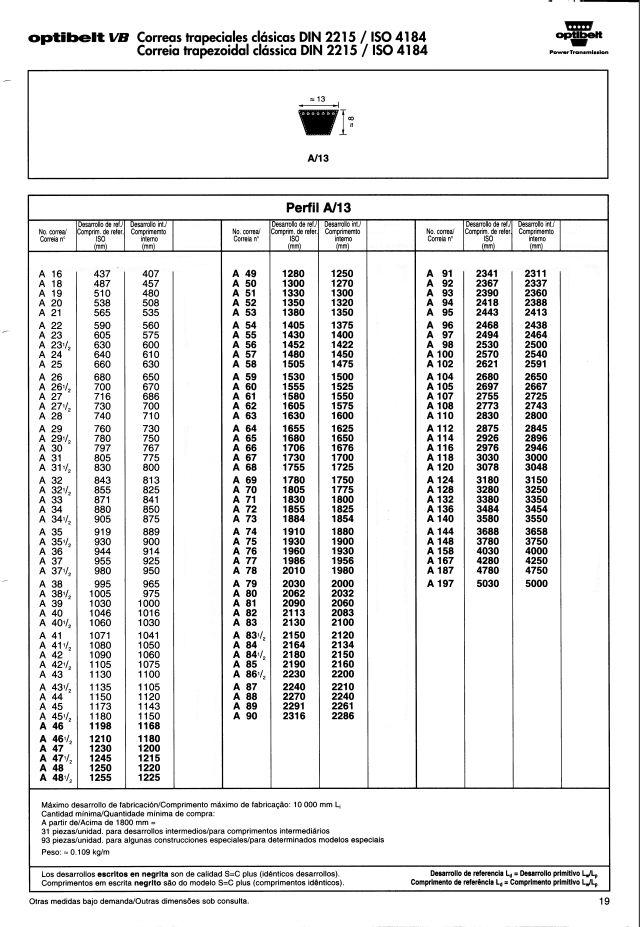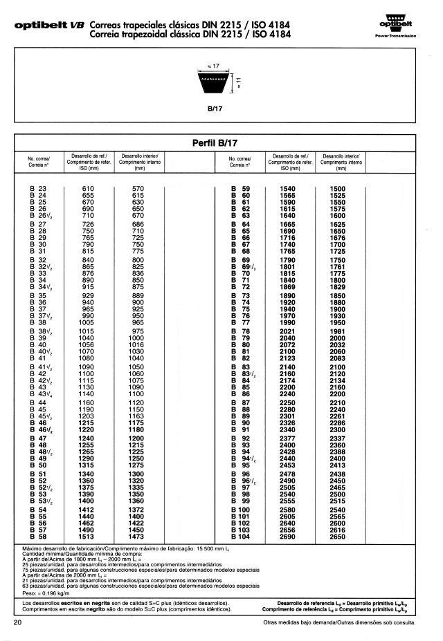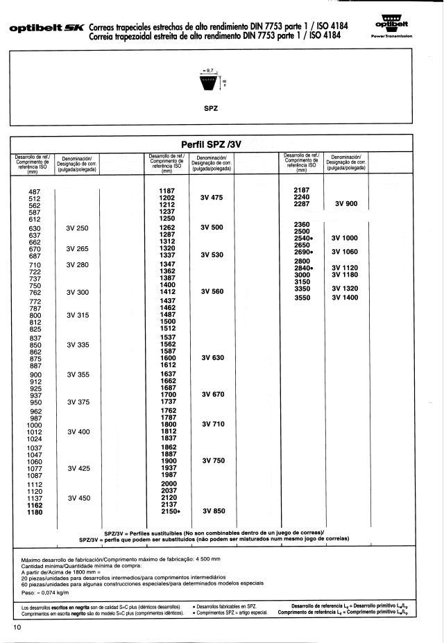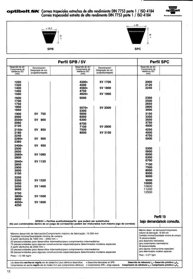 Correas trapeciales estrechas de alto rendimiento DIN 7753 parte 1 / ISO 4184