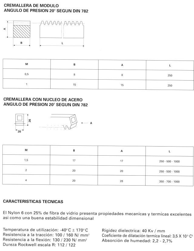 Cremalleras de módulo diente recto nylon 6FV 25%